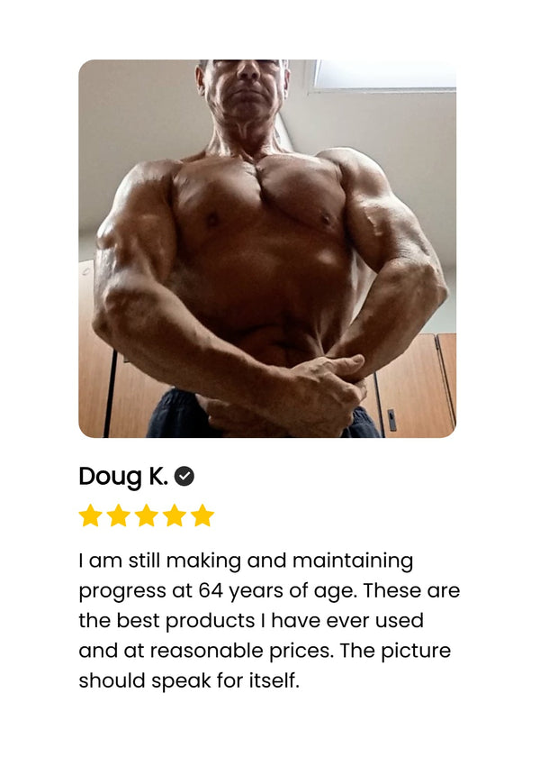 I just want to thank you for all of your excellent products. I’m 45, training hard again after a decade off, and I feel like I’m 25. The muscle fullness, the power, the drive it’s insane. Pumps that last for hours, recovery that makes me crave the next workout. You’ve earned a customer for life.